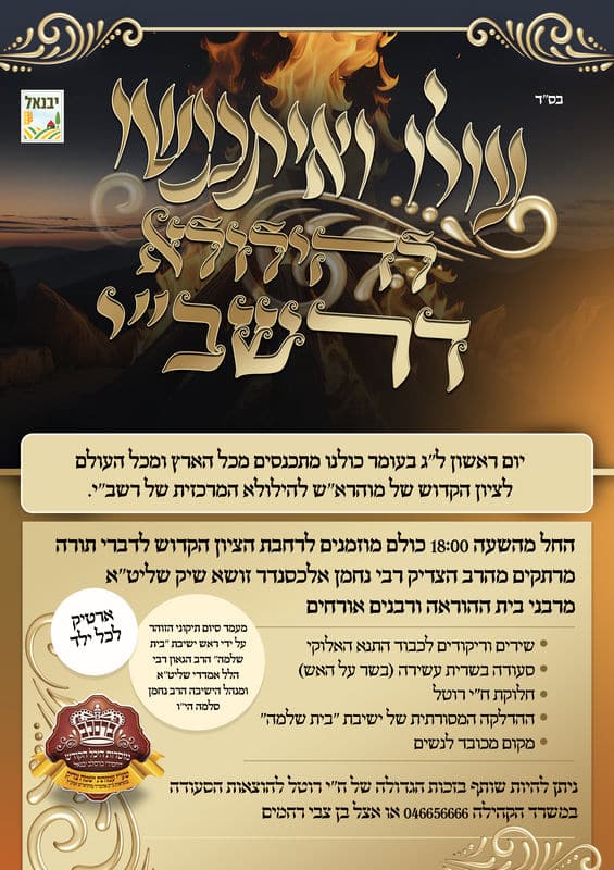 לאור הביקוש הגדול ביום חמישי הקרוב, ערב ראש חודש אב, תצא הסעות מאורגנות לציון הצדיק מיבנאל. מבני ברק- 0548471400 מירושלים-...